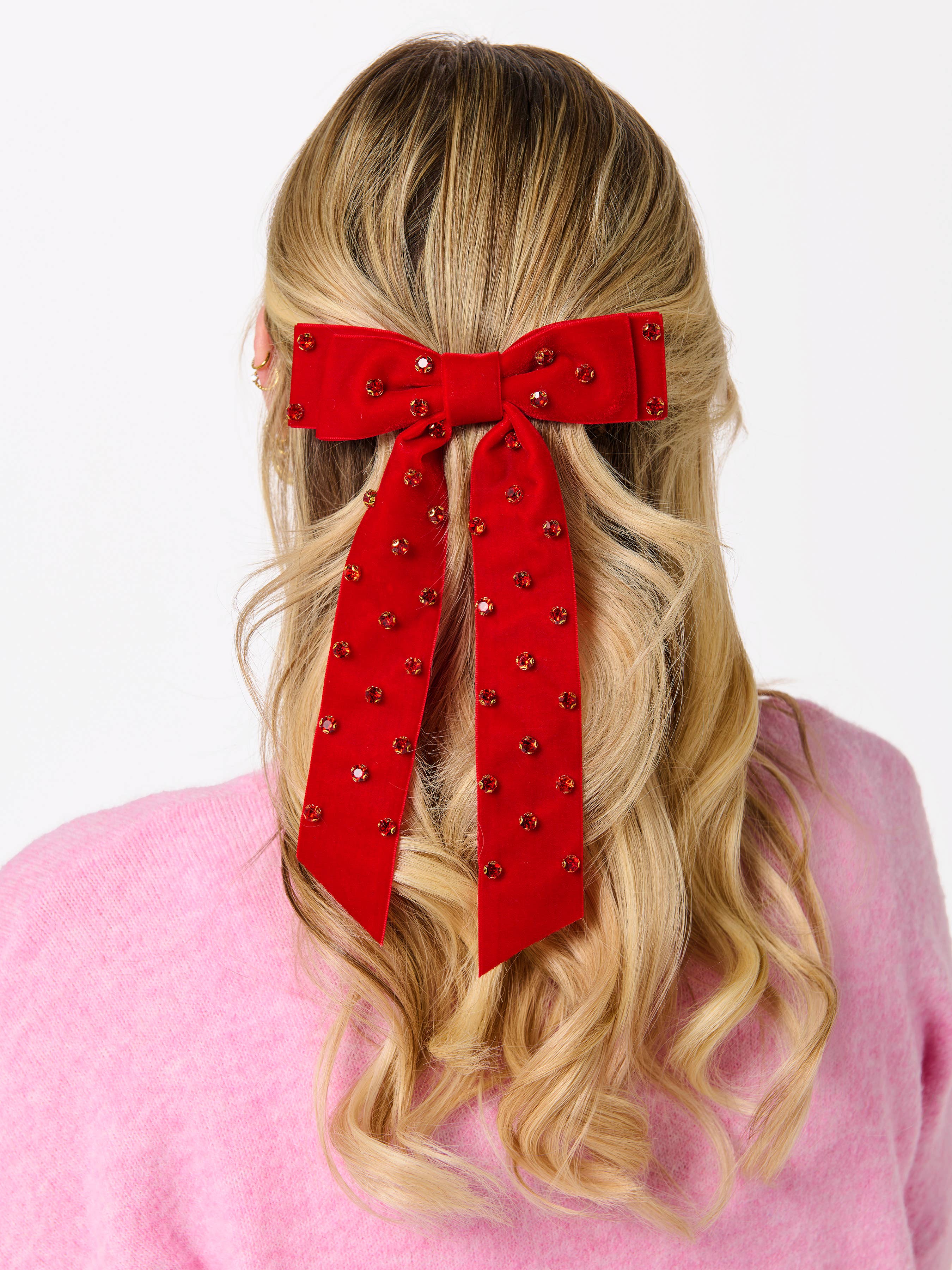 VELVET AND RHINESTONES BOW CLIP